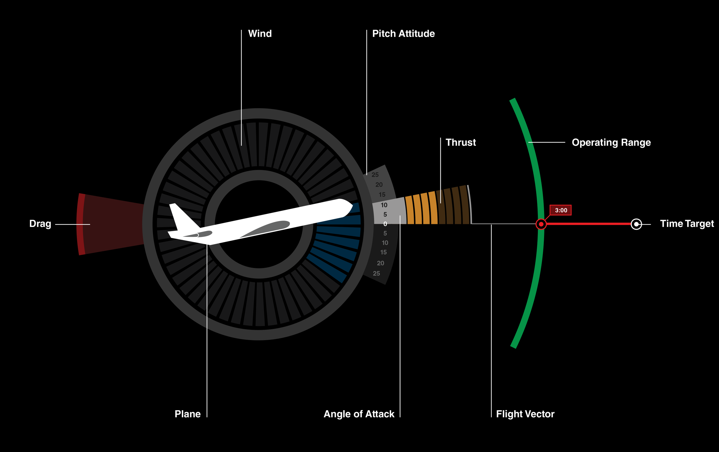 The energy display interface combines nine data sets into a singular, dynamic visual representation. It gives pilots a means of understanding how the plane’s energy profile is changing at all times, putting them in a better position to know what options are available for current and future maneuvers, as well as increasing the rate of recovery from upset conditions.